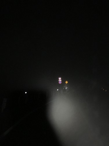 そしてこのあたりで霧が濃くなってきてライトが乱反射して周囲が見えづらくなります。