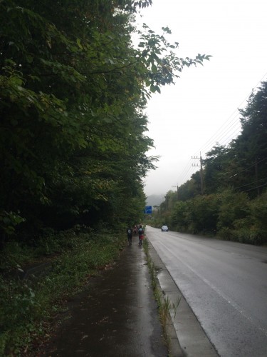 そして鳴沢氷穴のあたりで一旦舗装道路に出ます。