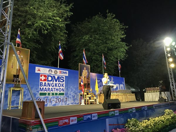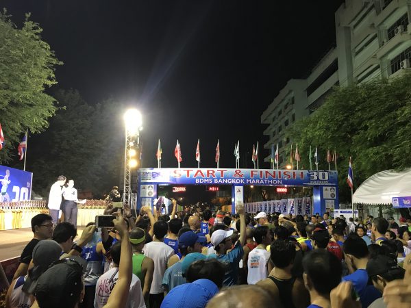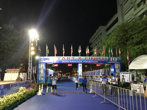 日本のマラソンだと特に東京マラソンのような大規模な大会だとスタートの1時間以上前から整列が始まっていたりしますが、そのあたりタイだからなのかのんびりしています。