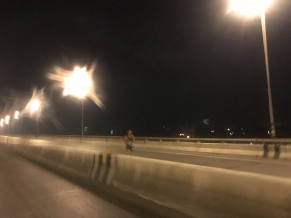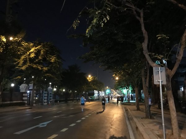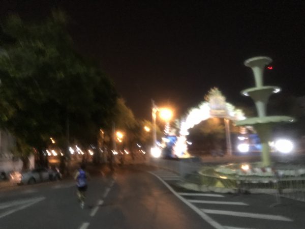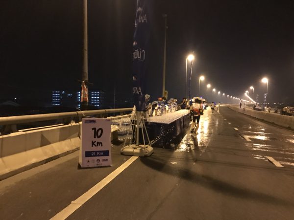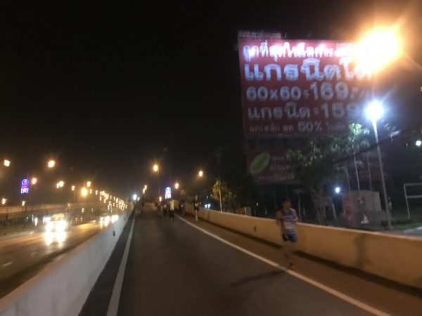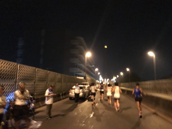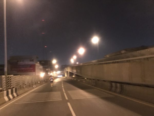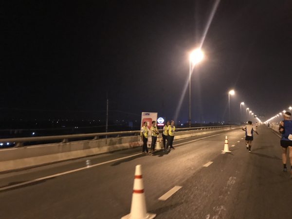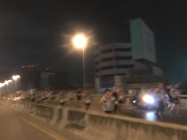 深夜の高速道路沿いなので、沿道には応援の人などいるはずもなく、首都でのマラソンだから東京マラソンみたいに周りが盛り上がっているんだろうなと思って期待していたのですが、とても寂しい感じです。