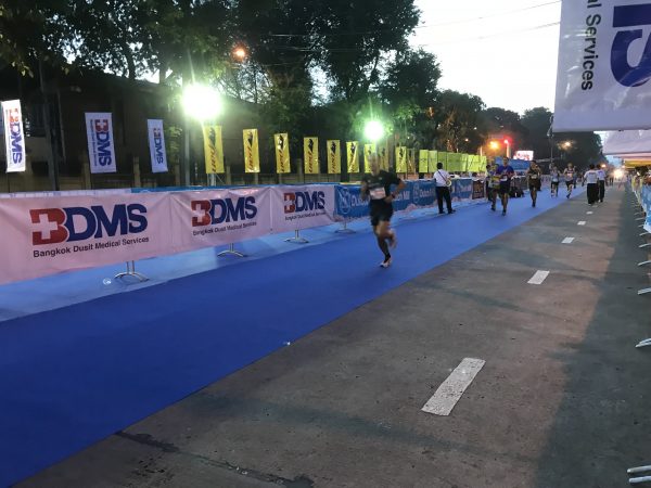 最後の角を曲がってピッサヌローク通りに入りラストスパート。なんとか目の前の人をかわしてフィニッシュ。