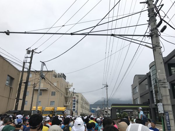 一昨年参加時のナンバーカードは1700番台だったのですが、今回は2000番台と前に300人ほど増えていて、ということはその分だけスタートの位置が後ろになるということです。