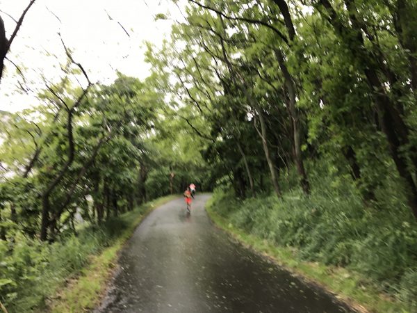 ところがこのあたりから雨が強まってきて、さらに向かい風が吹いてくるようになります。