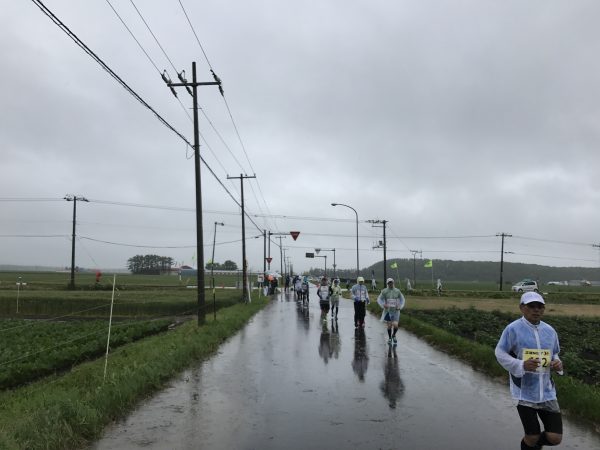はじめてのサロマ湖100kmウルトラマラソンでしたが、終始雨でサロマンブルーどころかサロマングレーの中を走る感じで、沿道の景色を楽しむことは残念ながらできませんでした。
