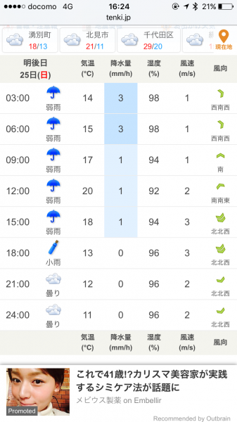 ところで、当日の天気を調べてみると、どうやら雨の可能性がありそう。