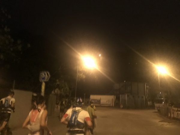 前回香港で参加した「Vibram Hong Kong 100」のときは市街地のすぐ裏にあるトレイルを走っていたので夜景がかなり明るく見えましたが、今回は島の港町なので明かりは少ないですね。
