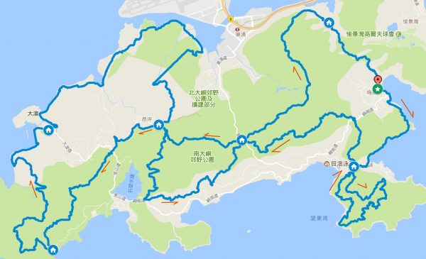 高低差はこんな感じ。前半の「Lantau Peak」と後半の「Sunset Peak」と手強い登りがあって、その他もアップダウンが激しい感じです。