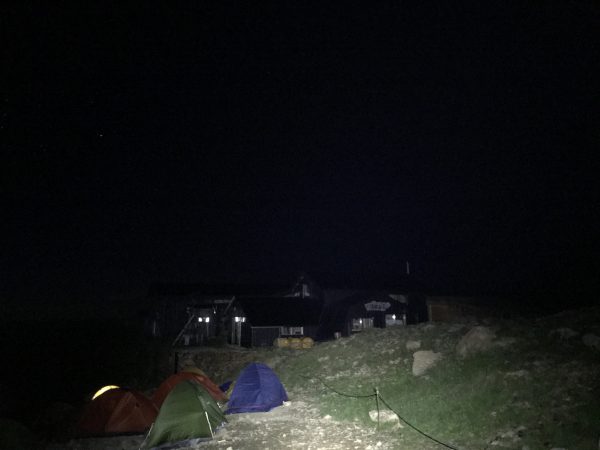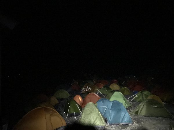 深夜のテント場はまだ起きている人はいなくて静まり返っています。