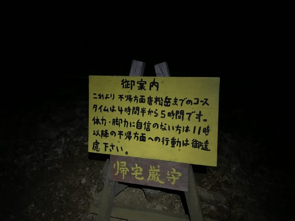 ここから先、不帰方面に進みます。帰宅厳守です。
