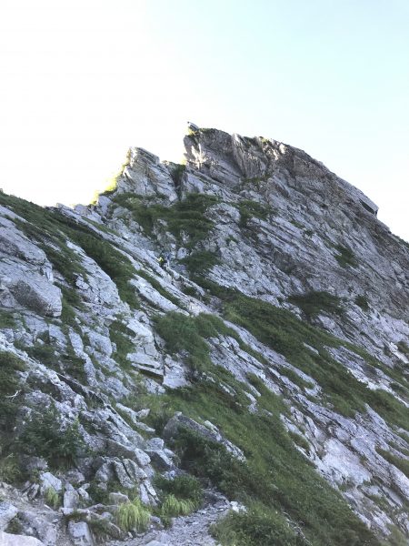 とはいっても難所はキレット小屋を出て20分くらいの間だけで、先ほどの不帰の嶮と比べるとそれほど難しい場所ではありませんでした。