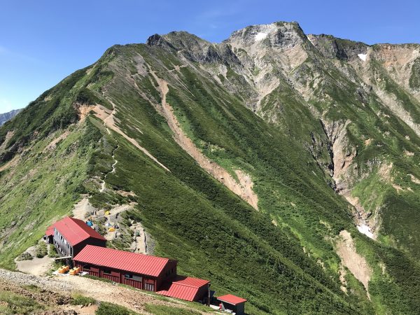 鹿島槍ヶ岳から1時間ほどで冷池山荘に到着。