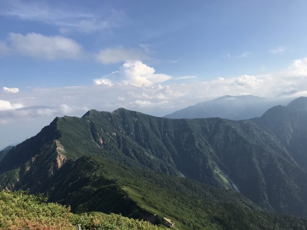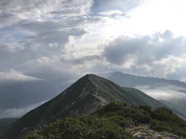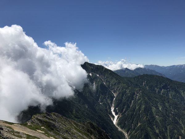 この先の鹿島槍ヶ岳方面も雲が出てきました。