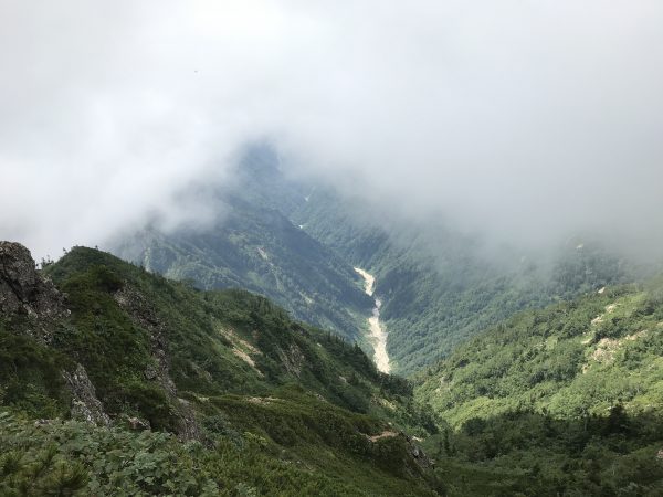 五竜岳に登る途中に振り返ると雲が出てきました。
