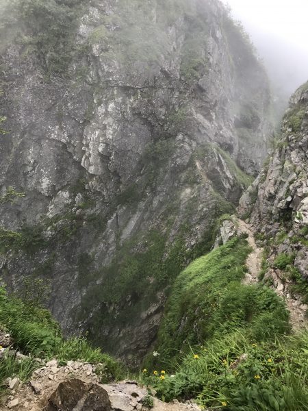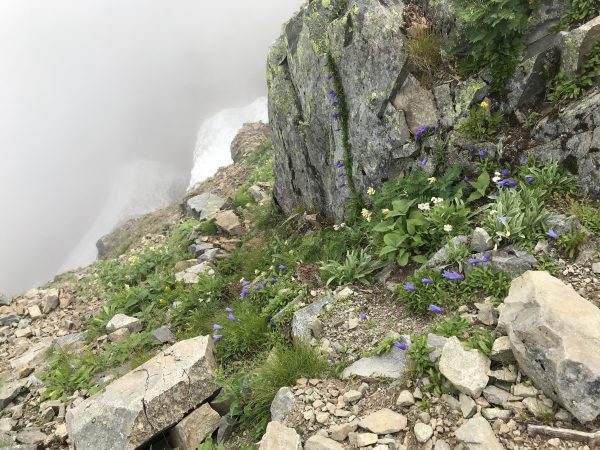 この日はとても暑い日でしたがこのあたりは曇っていて途中で雪渓があったりしてかなり涼しく感じます。