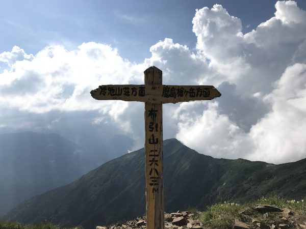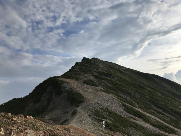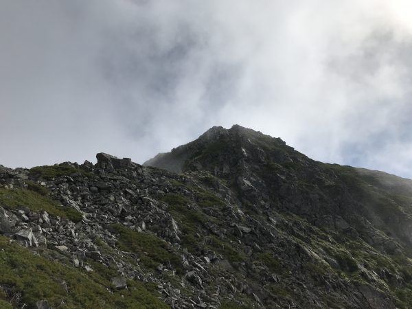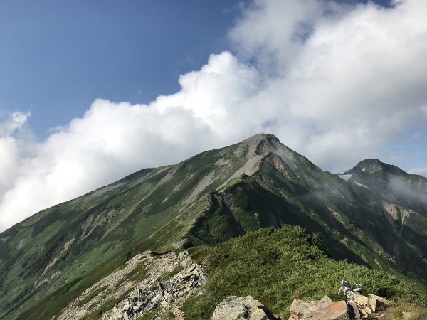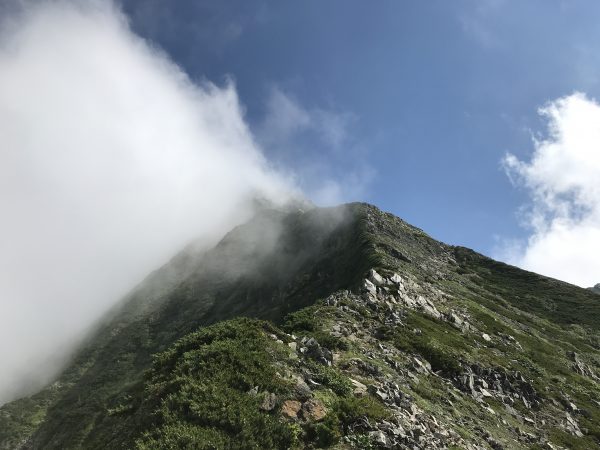 五竜岳を出てからずっと曇り空の中でしたが、山頂が近づいてくるにつれて青空がみられるようになってきました。