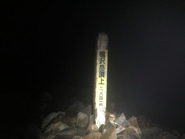 1時間ほどで岩小屋沢岳に登りますがまだ暗闇の中。