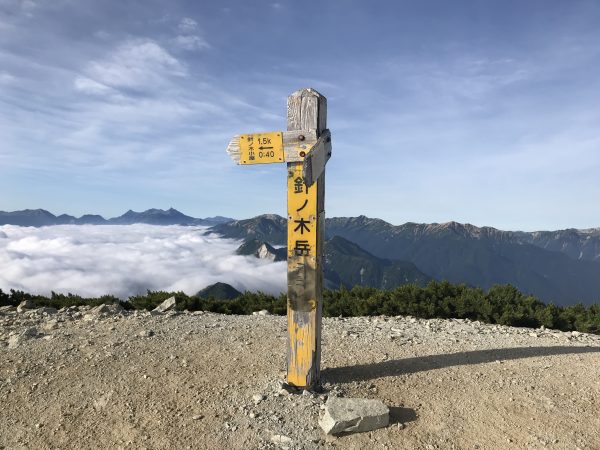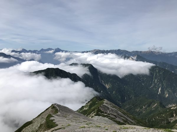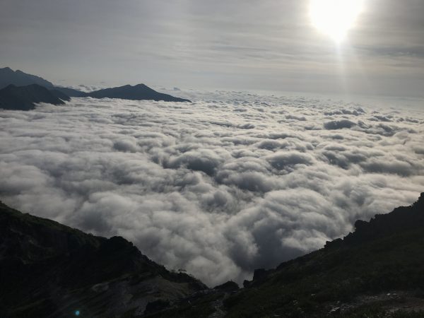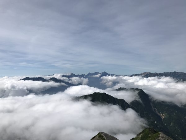 針ノ木岳山頂から見ると下の方には雲海が広がっています。