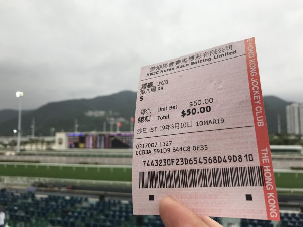 香港の馬はよくわからないので適当に単勝の馬券を購入です。