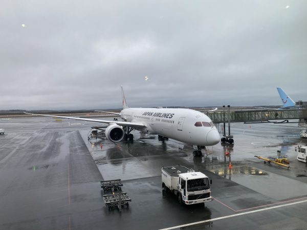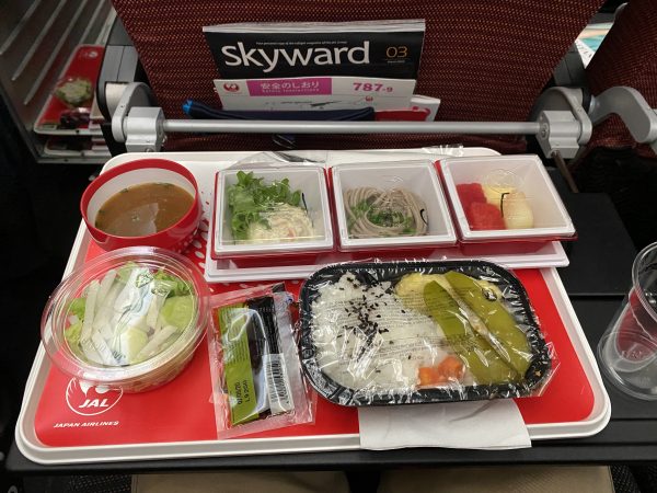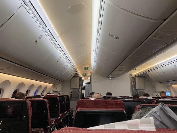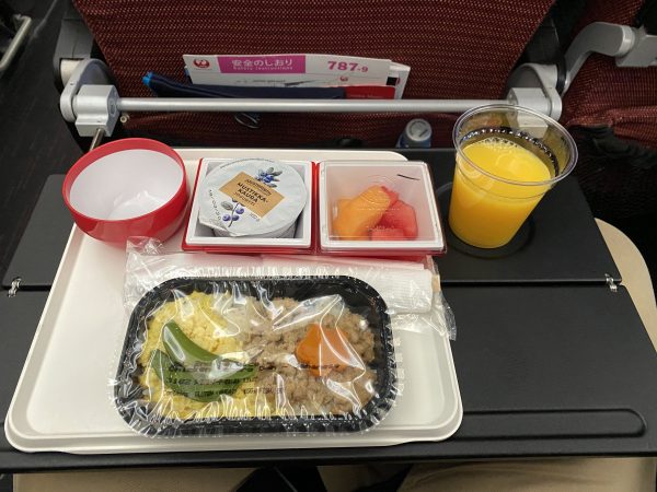 JALのボーイング787型機はエコノミークラスでも座席の感覚が広いのでゆったりできました。