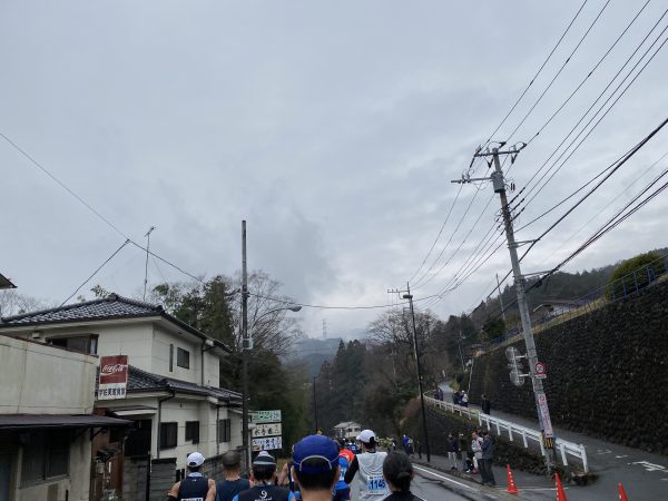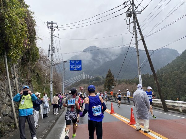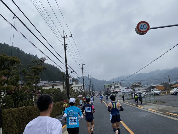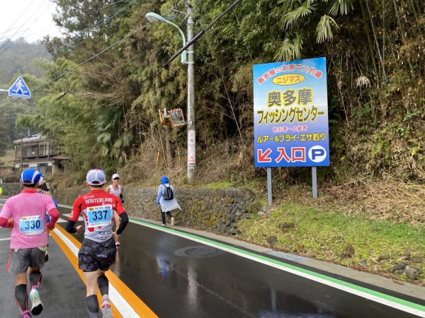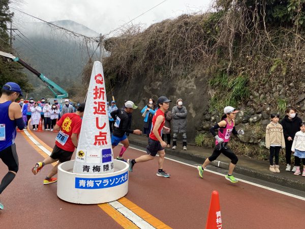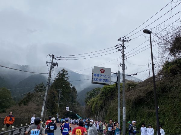 青梅マラソンは前半が登り基調、後半が下り基調になるので前半遅くても後半である程度は盛り返すことができると思っていたのですが、その目安が1分くらい。折り返しを1時間1分以内で通過できれば何とかなるかなと考えていたのですがその目安の1分をこの時点で超えてしまいます。