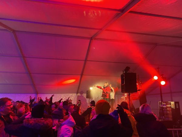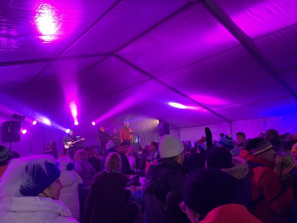 花火大会が終わって帰ろうとするとAFTER SKIと書かれたテントの中から盛り上がっている音が聞こえます。