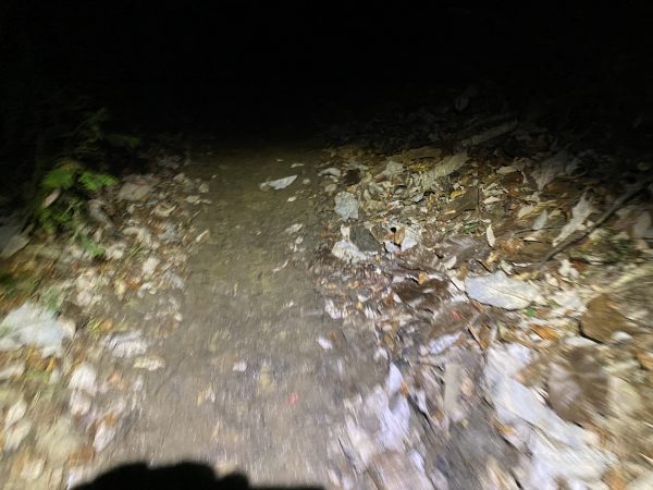 エイドでは10分ほど休憩し、夜7時を過ぎて暗い中を出発します。
