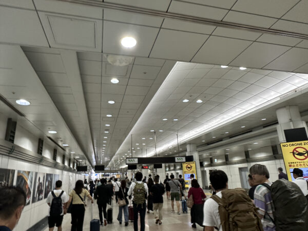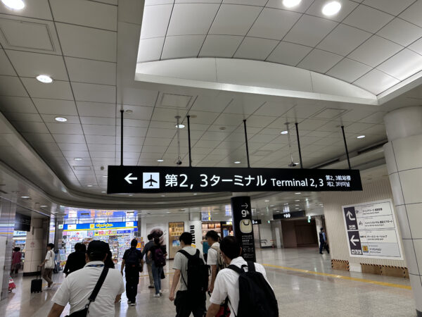 成田空港までは電車で移動。空港第2ビル駅で降りて