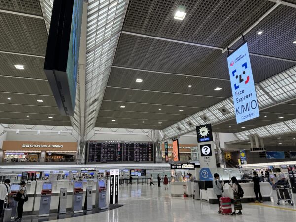 前日のオンラインチェックインの際に確認すると有料で足元の広い座席を予約していたのに機材が変わったのか座席が変わって普通の座席になっていたのでカウンターの人と交渉したりして時間がかかりましたが、出発1時間前には終了。