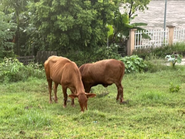 道端には牛がいますね。