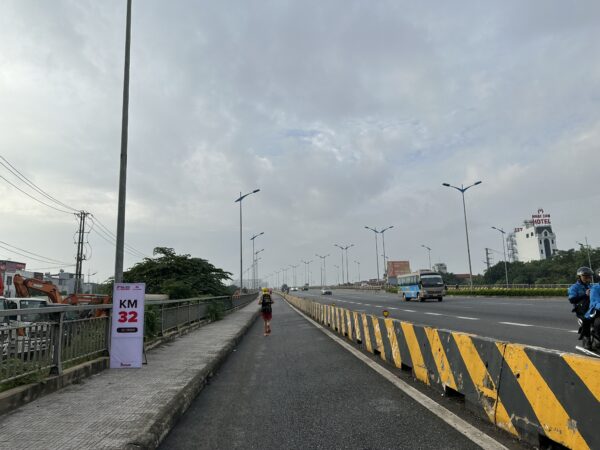 ニャッタン橋の上で20kmを通過。まだまだ橋は続きます。