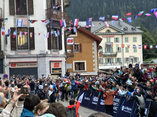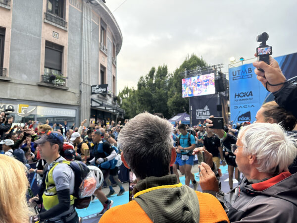 午前8時にPTL(2人or3人一組でモンブラン周辺の300km/25000mD+のコースをマーキングなしで進むレース)のスタートがあるのでそれを見に行くことにします。