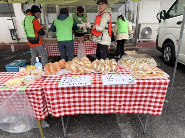 フルーツサンドを食べているとスタッフの人が「260kmのトップが通過しました」と連絡していました。