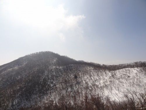 氷上から先ほど登った黒檜山を見上げます。