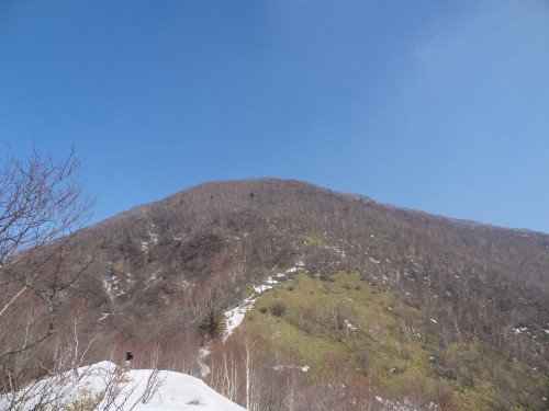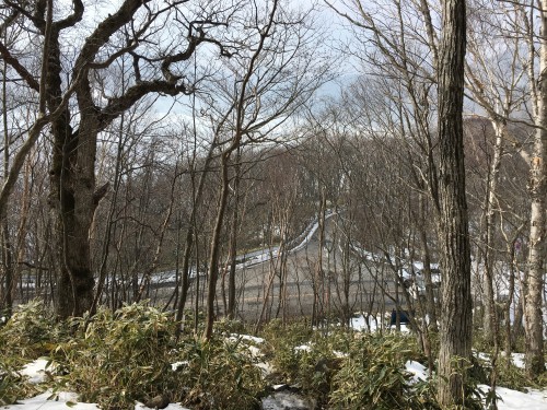 急な下りが続きますが、溶けてシャーベット状の雪で歩きづらい感じ。