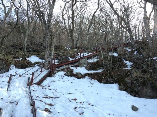 鉄の階段が雪に埋もれて歩きづらかったりしますが、難なく進んでいきます。