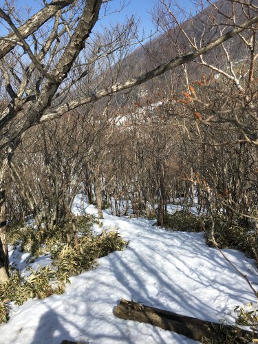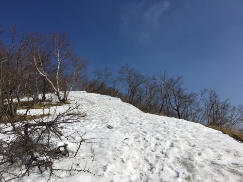 もう少し進むとまた雪が現れはじめてきて、急登に入ります。
