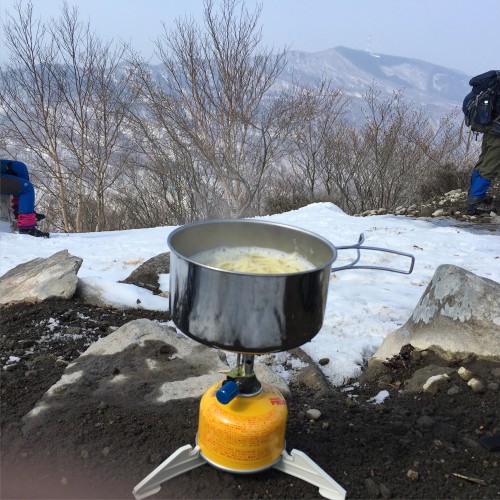 昼食は山でおなじみのマルタイ棒ラーメンです。