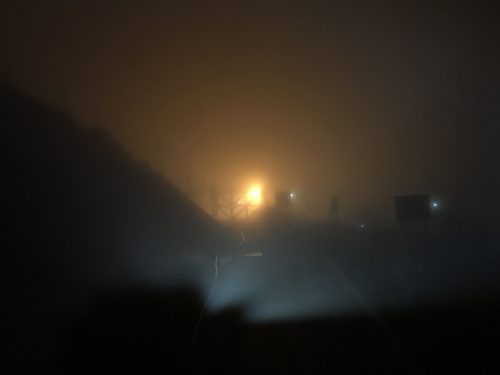 ところがこのあたりから霧がひどくなってきてヘッドライトを照らしても前が見えない感じ。