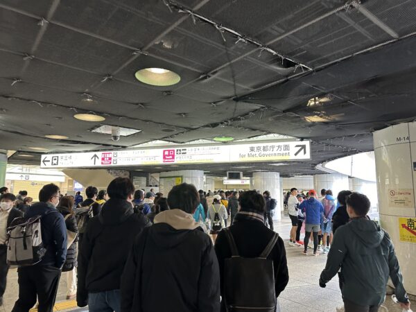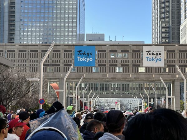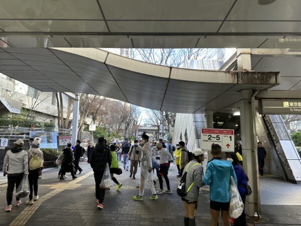 前回2022年に行われた「東京マラソン2021」では、入口でQRコードを提示しなければならなかったり一般入場者も来場登録が必要だったりで厳重な警戒態勢でしたが、今回は特にチェックがありませんでした。