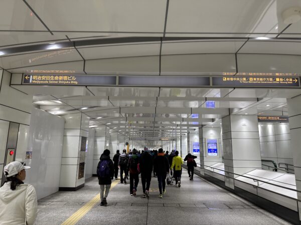 自宅から電車で移動。7時40分ころに新宿駅に到着します。