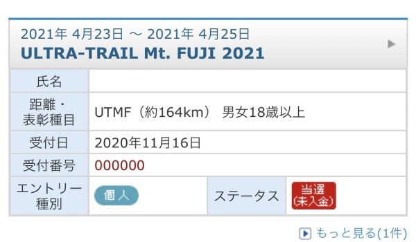 今日発表されたUTMF(Ultra-Trail Mt.FUJI)の抽選ですが、